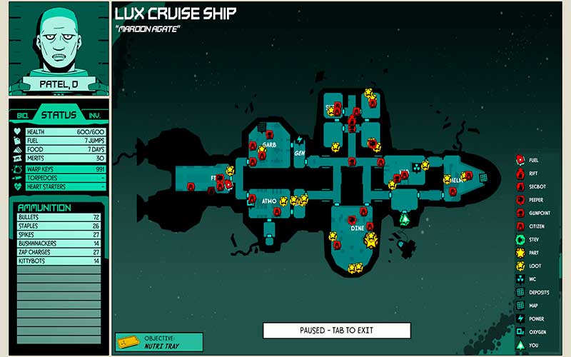 Planen Sie Ihre Mission, lernen Sie den Aufbau des Schiffes kennen und führen Sie Ihre Gefangenen Bande durch die Herausforderungen und Feinde, die zwischen ihnen und dem Überleben stehen. Suchen Sie verzweifelt nach Vorräten, plündern Sie nach Nahrung, schwingen Sie improvisierte Waffen und entscheiden Sie, wann Sie kämpfen und wann Sie fliehen wollen.