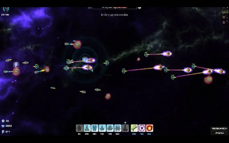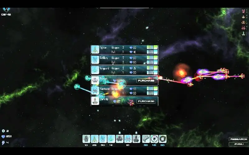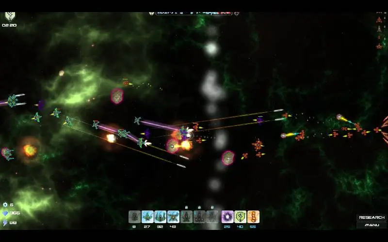 • Modi und Schwierigkeitsgrade: Klassischer Modus, Nahkampfmodus und Ressourcenmodus mit 3 Schwierigkeitsgraden, bei denen dauerhafte Upgrades zur Stärkung zukünftiger Flotten freigeschaltet werden können.