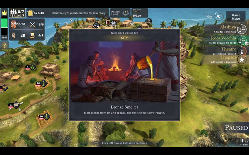 Führe die Minoer in „Epic Palace Knossos“, einem Strategiespiel, das in der späten Bronzezeit spielt. Errichte einen Palast auf Kreta und erweitere dein Reich durch Handel mit Byblos, Troja und anderen Zivilisationen. Verbessere Landwirtschaft, Architektur und Handwerk, manage Diplomatie und Verteidigung, und verschönere deinen Palast mit historischen Relikten, um die minoische Kultur zu prägen.