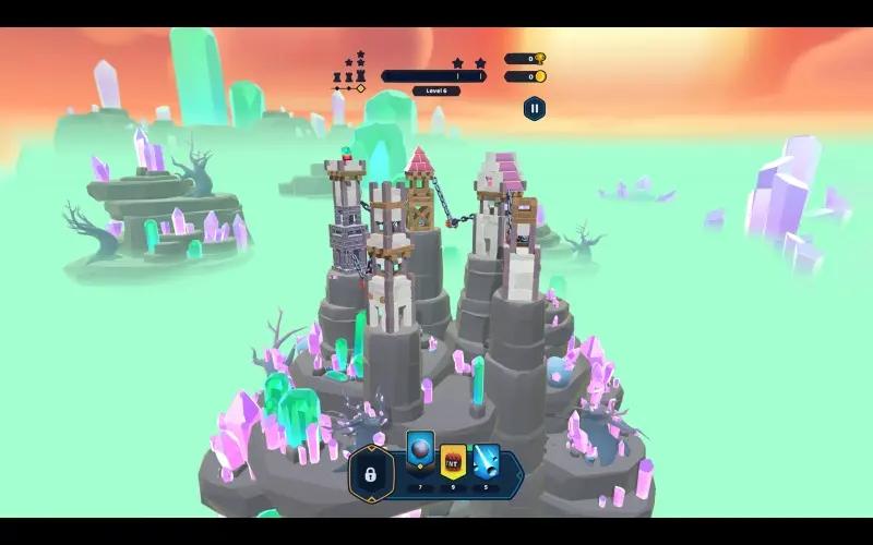Seltsame Burgen sind überall im Land aufgetaucht, und deine Aufgabe ist klar: Sie müssen zerstört werden. Feuere Projektile ab, platziere Sprengstoffe und sieh zu, wie jeder Stein zerbricht. Dies ist die Kunst der Zerstörung – gewaltige Festungen zu Staub zu machen.