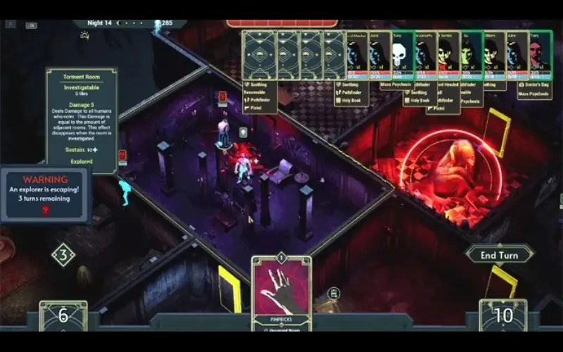 • Schalte im Laufe des Spiels Karten frei und sammle sie, um dein Kartenspiel um Werkzeuge des Schreckens wie markerschütternde Schreie, Phantome, knarrende Böden und sich verschiebende Wände zu erweitern.