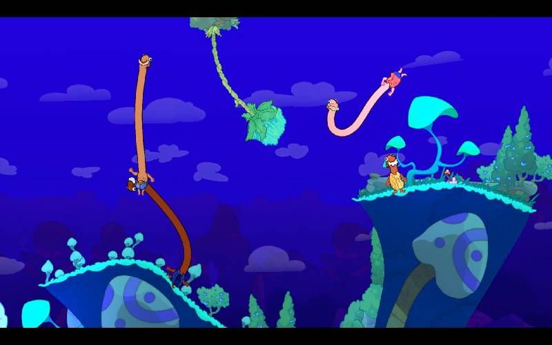 Schwinge, strecke und schnappe als die Esophaguys, Älteste mit wahnsinnig langen Hälsen! Beiß dich durch Koop-Herausforderungen, witzige Minispiele und ein erzähltes Abenteuer. Spielen Sie allein oder mit Freunden, um verlorene Outfits freizuschalten und die absurdeste Reise der Welt zu erleben, auf der es nur so wimmelt!