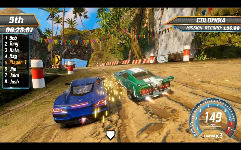 Spüre den Rausch des Hochgeschwindigkeitsrennens, während du durch filmreife Strecken voller Stunts und Überraschungen rast. Drifte um Kurven, aktiviere Nitro-Boosts und entdecke Abkürzungen voller explosiver Missionen. Fahre alleine oder tritt gegen einen Rivalen in intensiven Split-Screen-Rennen an, die auf pure Geschwindigkeit ausgelegt sind.
