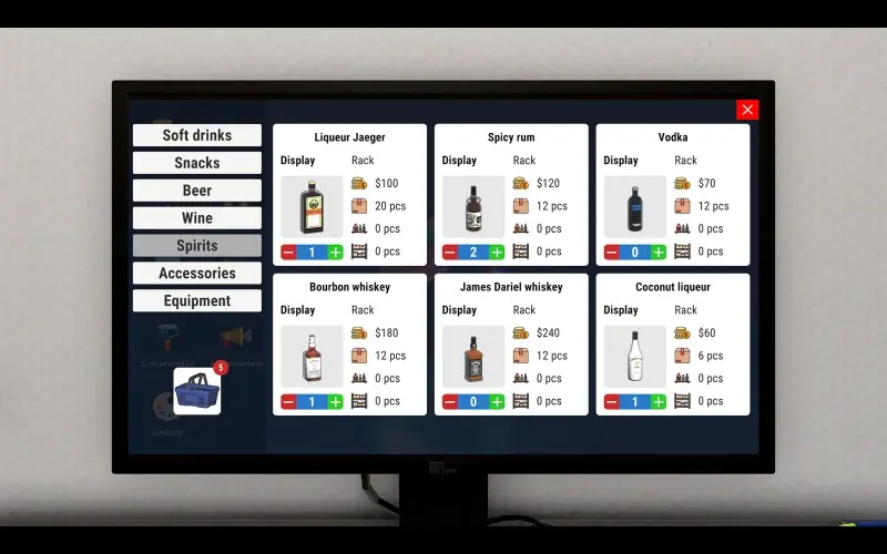 Liquor Store Simulator ist ein Managementspiel, das von Tovarishch Games entwickelt wurde. Eröffne dein eigenes Spirituosengeschäft mit Krediten. Am Anfang wird es nicht einfach sein, du musst an der Kasse arbeiten, Lieferungen annehmen, Aufzeichnungen führen und für Ordnung im Verkauf sorgen. Verwandeln Sie Ihr bescheidenes Ladengeschäft in einen florierenden Laden! Mit einer großen Auswahl an zufriedenen Kunden.