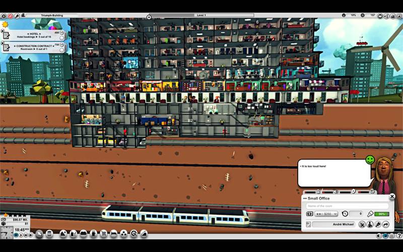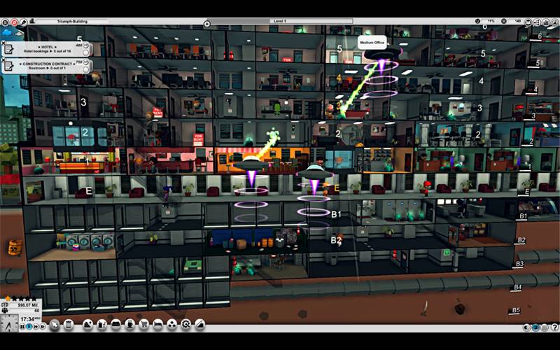 Setze deine architektonischen und geschäftlichen Fähigkeiten in „Mad Tower Tycoon“, einem dynamischen Simulationsspiel, ein. Baue und verwalte einen geschäftigen Wolkenkratzer, bringe die Bedürfnisse der Mieter und deine finanziellen Ziele in Einklang und stelle dich zufälligen Herausforderungen, um eine Sechs-Sterne-Bewertung zu erhalten.