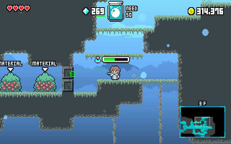 Magic Potion Millionaire ist ein seitwärts scrollendes Action-Adventure-Roguelike-Spiel, das dritte Spiel der Magic Potion-Serie, die von ARTIFACTS entwickelt wurde. Schlüpfen Sie in die Rolle eines wagemutigen Apothekers namens Pastel, der bereit ist, im Namen des Profits alles zu riskieren. Betreten Sie den Kerker, sammeln Sie Materialien, stellen Sie Tränke für den Profit her und wiederholen Sie den Vorgang. Ihre Konkurrenten sind zahlreich und die einzige Möglichkeit, sie zu besiegen, besteht darin, stärker zu werden und immer bessere Materialien aus dem Kerker zu holen, bis Ihr Konkurrent aufgibt.