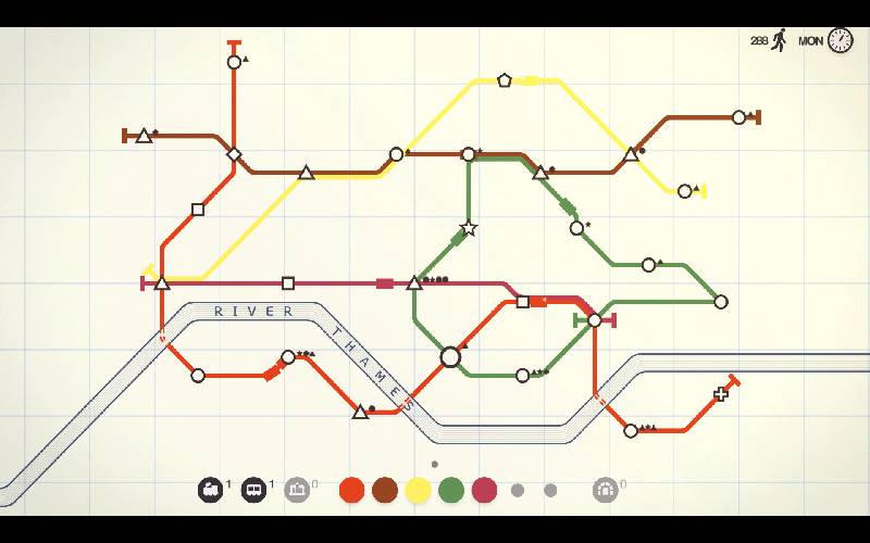 Entwirf U-Bahn-Netze in Mini Metro! Plane und optimiere Zugstrecken für eine wachsende Stadt. Nutze deine Ressourcen klug und gestalte die Linien neu, wenn neue Stationen hinzukommen, um den Verkehr am Laufen zu halten. Die Herausforderung? Wie lange kannst du den Transport der Stadt reibungslos am Laufen halten?
