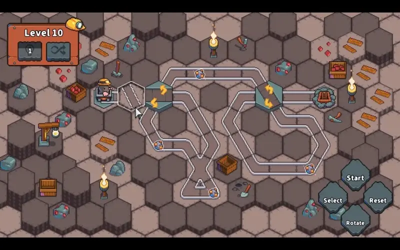 Mole Cart Mining ist ein von Afil Games entwickeltes Puzzlespiel. Führe einen entschlossenen kleinen Maulwurf in einer Lorenbahn, drehe Gleise auf einem sechseckigen Raster, um eine perfekte Route zu erstellen, sammle alle Mineralien ein und erreiche stilvoll den Ausgang.
