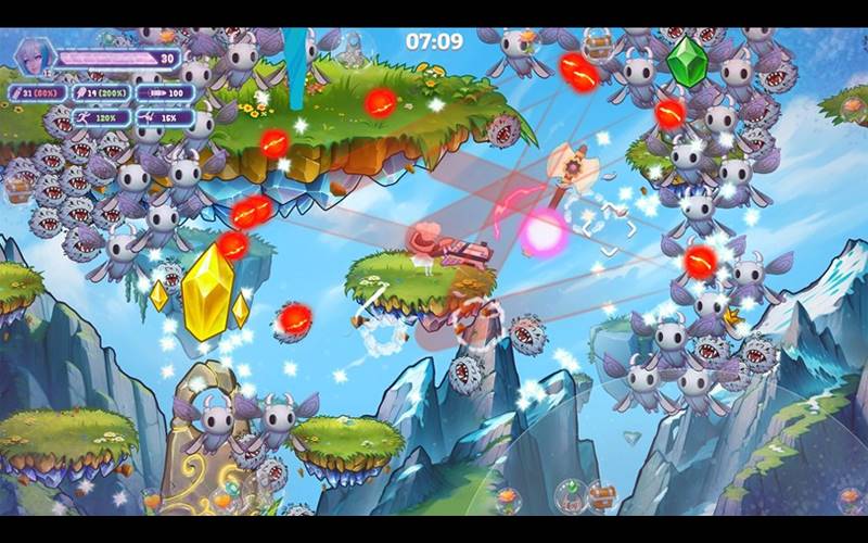 Schwebe hoch durch einen Himmelturm und kämpfe gegen Monsterhorden in Sky Survivors, einem Arena-Shooter-Roguelite! Erschaffe deinen ultimativen Krieger mit einzigartigen Charakteren, Waffen und einem riesigen Arsenal an Fähigkeiten. Baue deine Treppe zum Sieg, eine von Monstern gefüllte Etage nach der anderen!