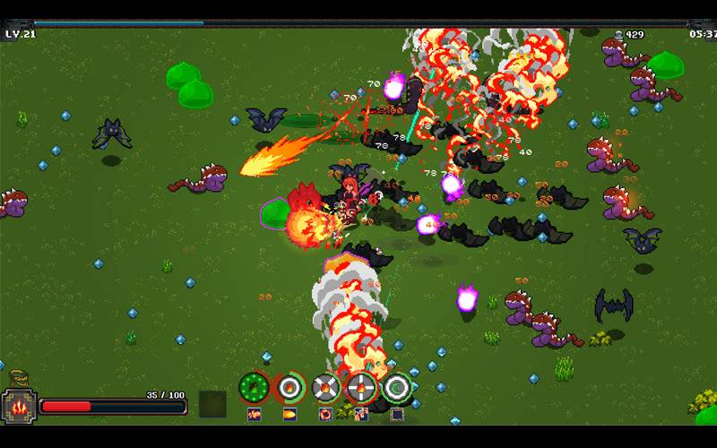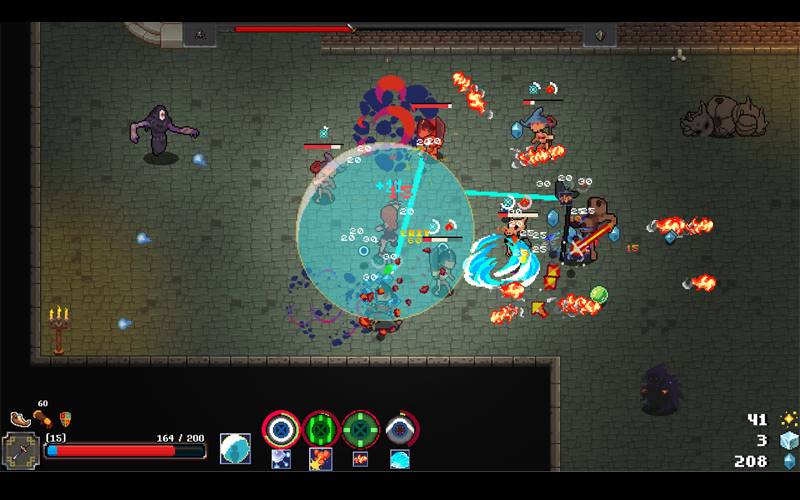 • Pixelige Kunst: Klassische Pixelgrafik in einer Top-Down-, 2D-Perspektive, verbessert das schnelle Action-Rogue-Lite.