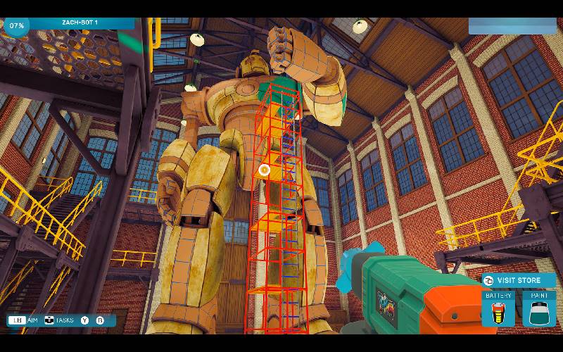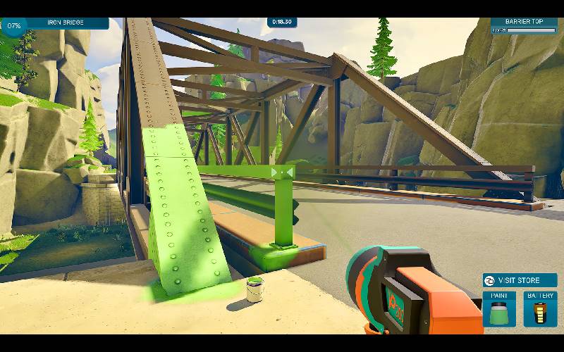 Führen Sie Ihr Farbengeschäft und bringen Sie mit einem Sprühstoß nach dem anderen wieder Leben in Spatterville. Von gemütlichen Küchen bis hin zu kolossalen Robotern maskieren, reparieren und streichen Sie sich Ihren Weg durch die Stadt. Mit jeder wiederhergestellten Oberfläche wachsen deine Fähigkeiten und damit auch dein Ruf als Sprühexperte der Stadt.