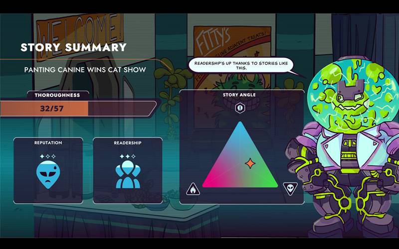 Werde der erste Robo-Reporter bei Times & Galaxy und decke hyperlokale Nachrichten im gesamten Dorp-System auf. Verfasse Artikel und meistere Herausforderungen des Weltraum-Reportings für ein aufregendes Erlebnis.