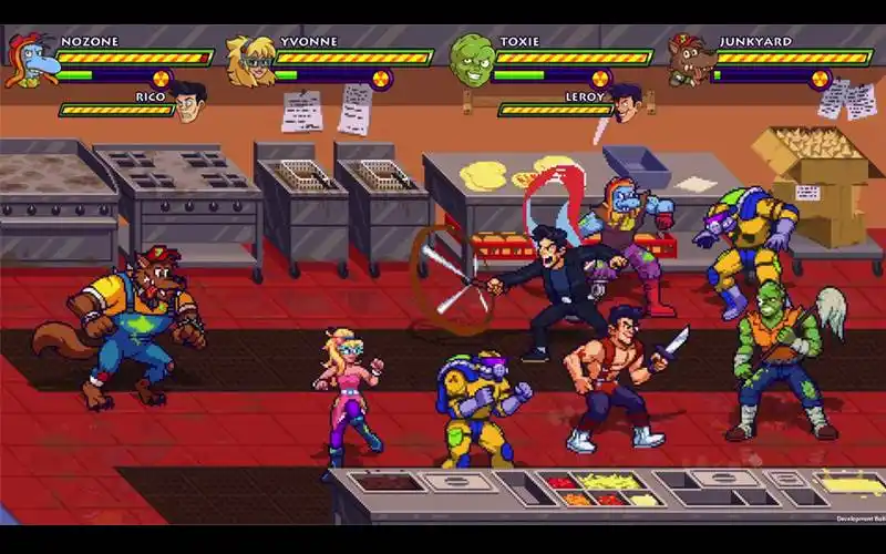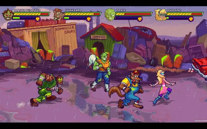 Toxie ist zurück! Mit Mopp in der Hand und Tutu im Anschlag wird jetzt Tromaville in einem radioaktiven Beat ‚em-up für 1-4 Spieler aufgeräumt! Schnapp dir deine Freunde und setze verrückte Umweltkrieger ein, um Umweltverschmutzer, Mutanten und alle anderen, die sich an deinem Giftmüllrevier zu schaffen machen, zu vernichten!