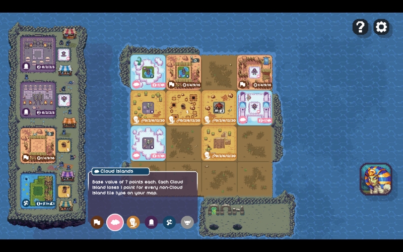 • Strategisches Terrain-Bauen: Entwerfe und platziere Terrain-Plättchen auf deiner Karte, jedes mit einzigartigen Punktregeln. Erschaffe Sümpfe, Wälder und mehr.