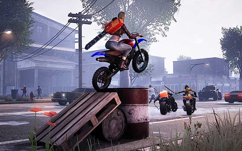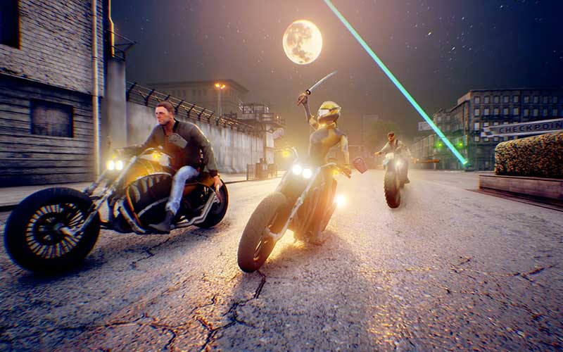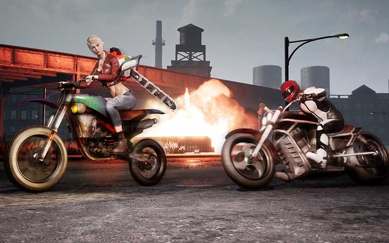 Während des Rennens bist du und die anderen Spieler mit Nahkampfwaffen bewaffnet. Ein Kampf geschieht auf dem Bike während der Fahrt. Spieler können gleichzeitig andere Racer mit Waffen wie Hockeyschlägern, Messern, Äxten und Baseballschlägern beschleunigen und bekämpfen.