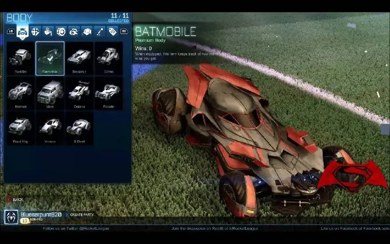 Rocket League Batman v Superman: Dawn of Justice Car Pack ist ein DLC-Outfit-Paket zum Film Batman v Superman: Dawn of Justice, das das „Batmobile Battle Car“ aus dem Film enthält.