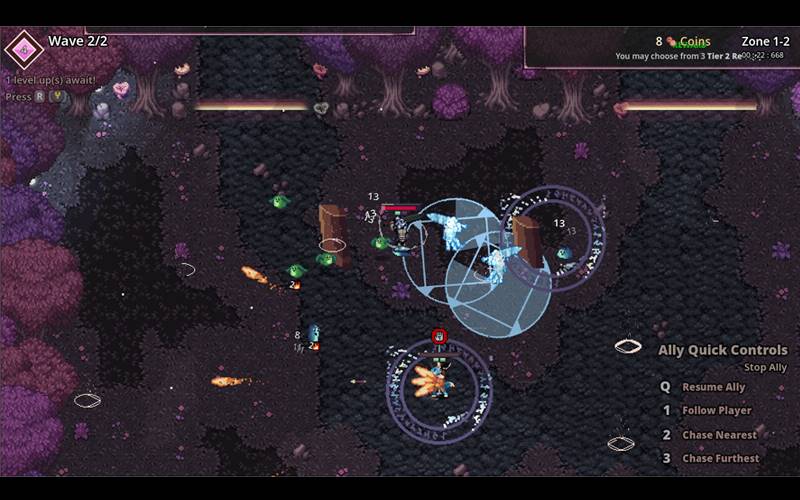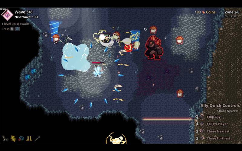 • Level Fähigkeiten für überraschende Effekte auf! Elementarfähigkeiten interagieren  dynamisch; Wasserfähigkeiten erzeugen Pfützen, die von Sturmfähigkeiten elektrifiziert werden. Fortschritt durch Meta-Upgrades über einen Fähigkeitenbaum.