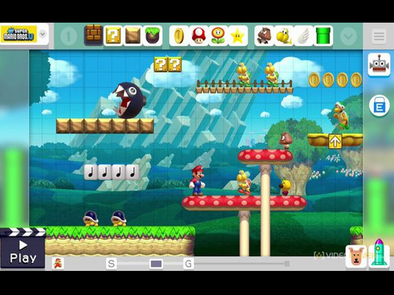 Du kannst Feinde und Plattformen bearbeiten, die Größe der Rohre ändern, deine eigenen Sound Effekte aufnehmen und den Auslöser während des Spiels. Du bekommst Zugang zu Dekorationen aus Super Mario Bros., Super Mario Bros. 3, Super Mario World und New Super Mario Bros. U.