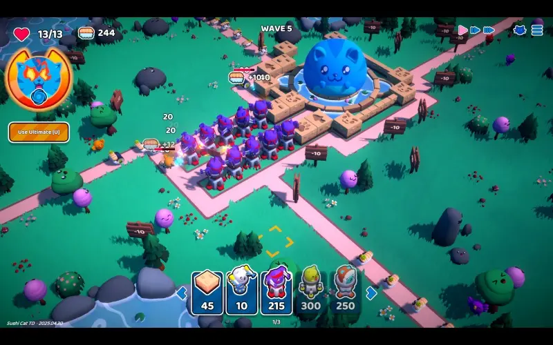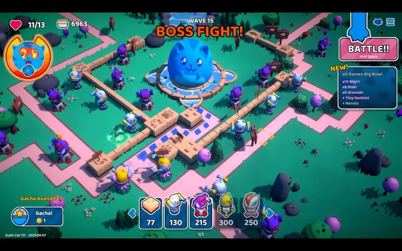 Böse Sushi-Armeen marschieren unter Broccolinis Herrschaft, während sich ein hungriger Held darauf vorbereitet, sein Land zu verteidigen. Durch den Verzehr von Sushi steigt die Stärke, während Türme und Wege bei jedem Lauf wieder aufgebaut werden. Schütze die Heimat der Sushi-Katzen und vereitle Broccolinis Plan, die Welt zu erobern!