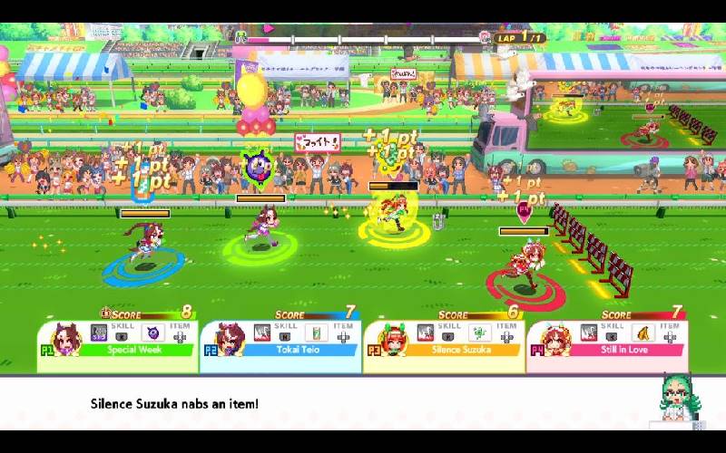 Der Text: Umamusume: Pretty Derby – Party Dash ist ein lässiges Sportspiel im Pixel-Art-Stil, das im Umamusume-Universum spielt und von Cygames, Inc. und Arc System Works entwickelt wurde. Ein farbenfroher Cast von Umamusume in Pixel-Art ist bereit, im Slapdash Grand Prix anzutreten, einem Schulfestival, das vier verrückte Events bietet! Welches Team wird rennen, schießen und sich den Weg zu Gold und Ruhm essen?