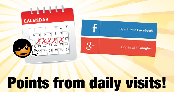 Wenn du dich täglich auf unserer Website anmeldest, erhältst du bei jedem Login 600 Punkte.