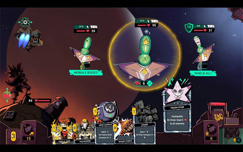 Starte mit Foam Gun auf ihrem verrückten Planetenschiff Baby Violence in Zet Zillions durch! Mische verrückte Kartenkombos, erober seltsame Planeten mit deiner Crew und dann BOOM! Spreng sie in einem glorreich chaotischen Streben nach einem neuen Zuhause für die Menschheit!